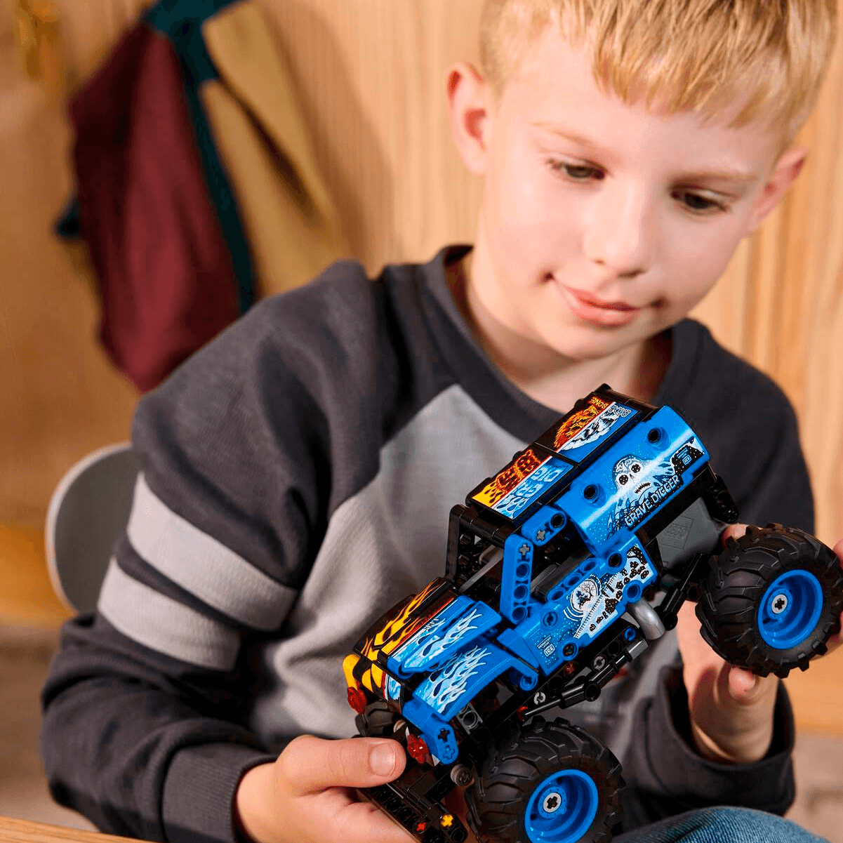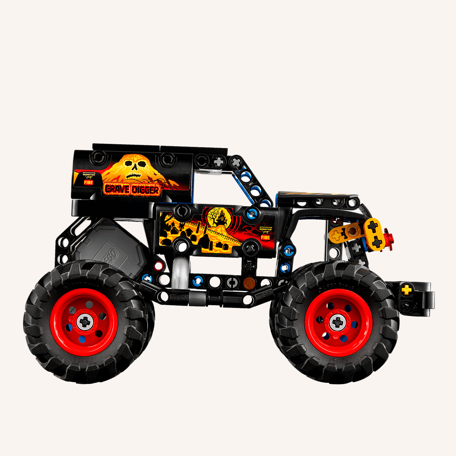 - BŪVĒJAMS ROTAĻU MONSTER JAM™ GRAVE DIGGER™. Pievienojies jautrībai ar šo LEGO® Technic Monster Jam™ Grave Digger™ Uguns un Ledus (42219) atvelkamo auto bērniem no 7 gadu vecuma