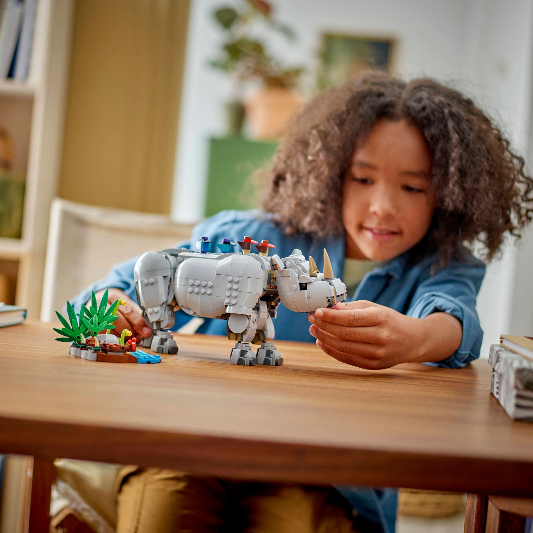 Zēnus un meitenes no 9 gadu vecuma sagaida savvaļas piedzīvojumi šajā LEGO® Creator 3in1 dzīvnieku būvēšanas komplektā “Savvaļas dzīvnieki: Majestātiskais degunradzis ar putniem” (31171). Degunradža darbības figūrai ir kustīgas kājas, pēdas, kakls, galva, ausis, mute un aste, un to papildina gliemezis, četri putni un no klucīšiem būvēts zāles un ūdens pleķītis.