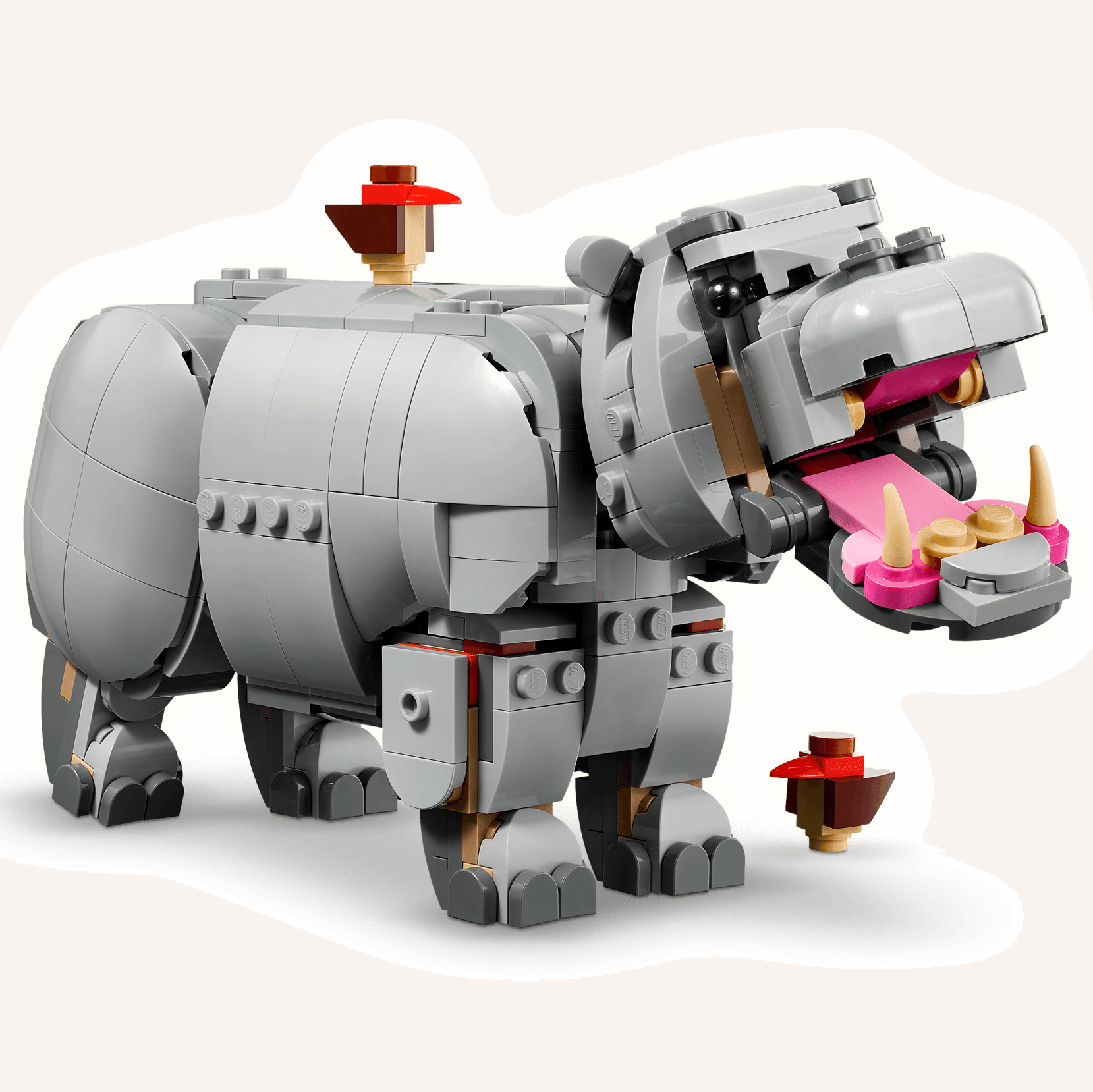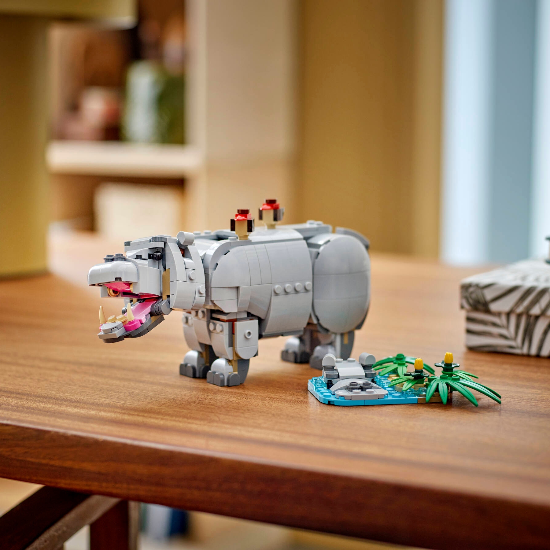 Bērniem ir trīs dažādas LEGO dzīvnieku figūru būvēšanas iespējas ar vieniem no tiem pašiem klucīšiem: kustīgs rotaļu degunradzis ar gliemezi, četri putni un gabaliņš zāliena, kustīgs rotaļu nīlzirgs ar diviem putniem un zālienu, vai kustīgs rotaļu valzirgs ar zivi un ledu, un ūdeni. Visas trīs dzīvnieku figūru ainas viedo lielisku LEGO dāvanu bērniem.