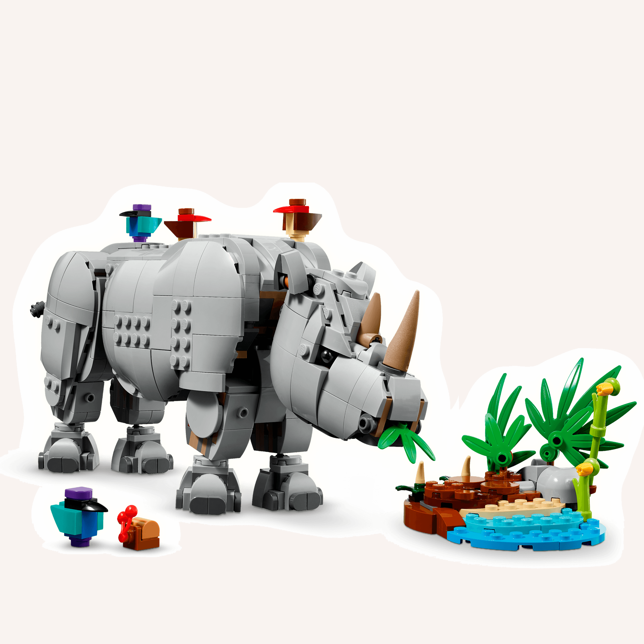 • Trīs dzīvnieku būvēšanas iespējas vienā kārbā. LEGO® Creator komplekts “Savvaļas dzīvnieki: Majestātiskais degunradzis ar putniem” ļauj bērniem no 9 gadu vecuma uzbūvēt un pārbūvēt trīs dažādus rotaļu dzīvniekus no vieniem un tiem pašiem klucīšiem